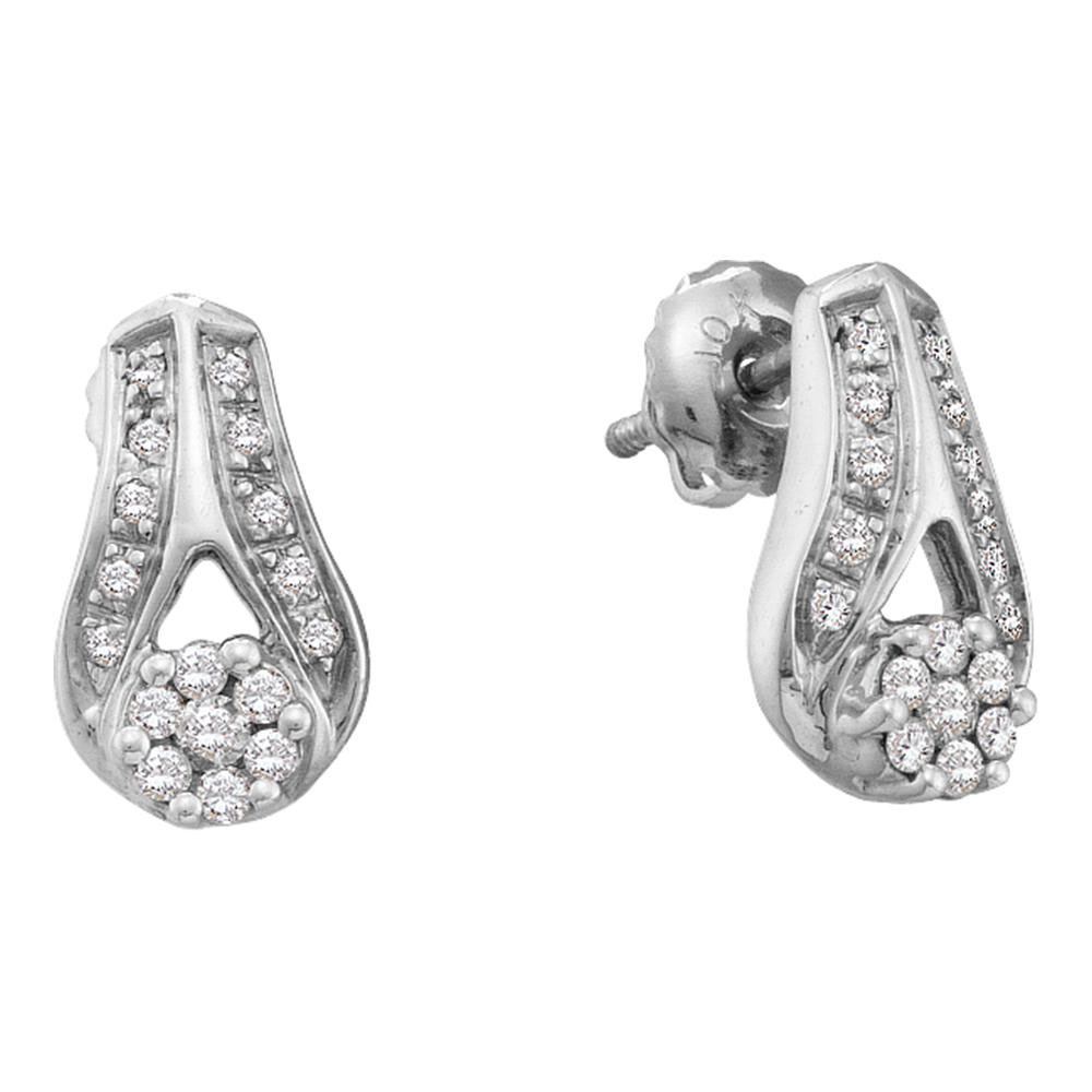 REF-33K6R - SKU: GD18807 ---- Diamond Flower Cluster Teardrop Earrings 1/4 Cttw 14kt White Gold