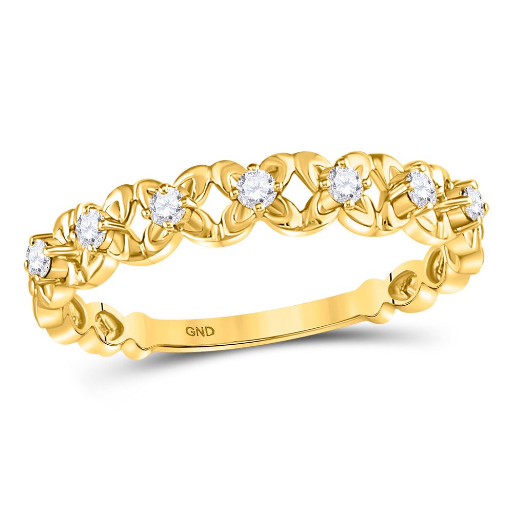 10kt Yellow Gold Womens Round Diamond Flower Petal Stackable Band Ring 1/6 Cttw