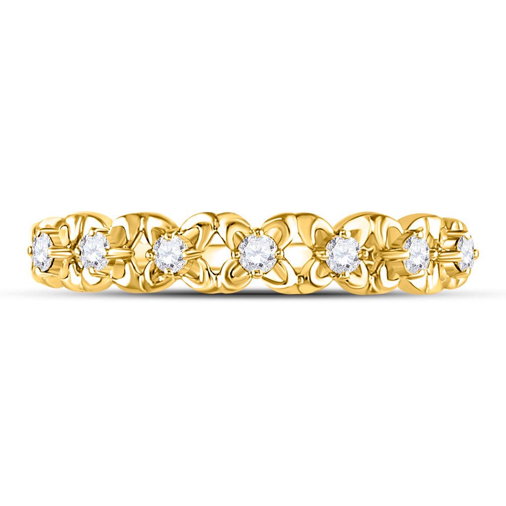 10kt Yellow Gold Womens Round Diamond Flower Petal Stackable Band Ring 1/6 Cttw
