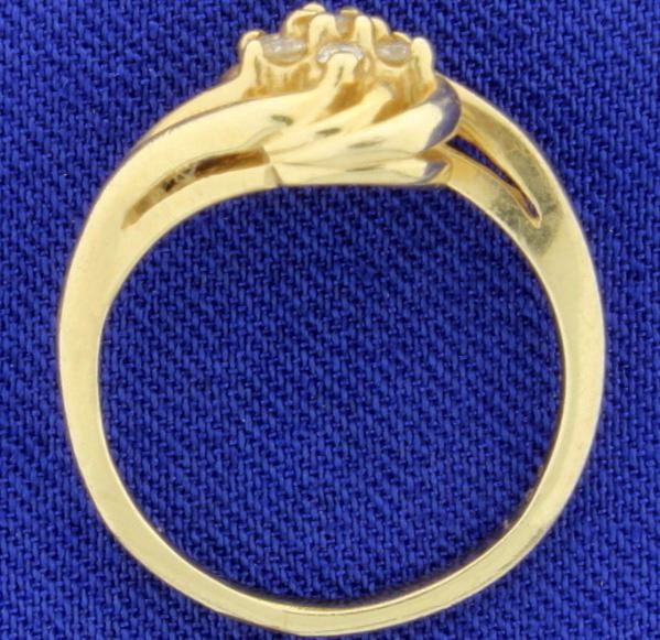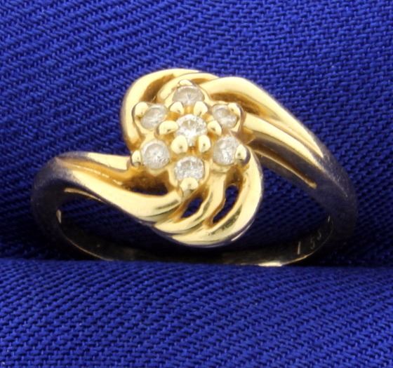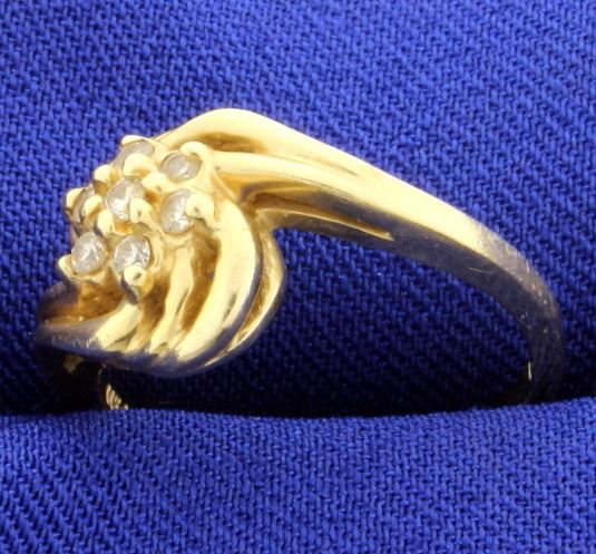 In 14K yellow gold, it contains one .03ct and six .02ct high quality diamonds, SI Clarity/I color . Size 5 3/4 3.5g