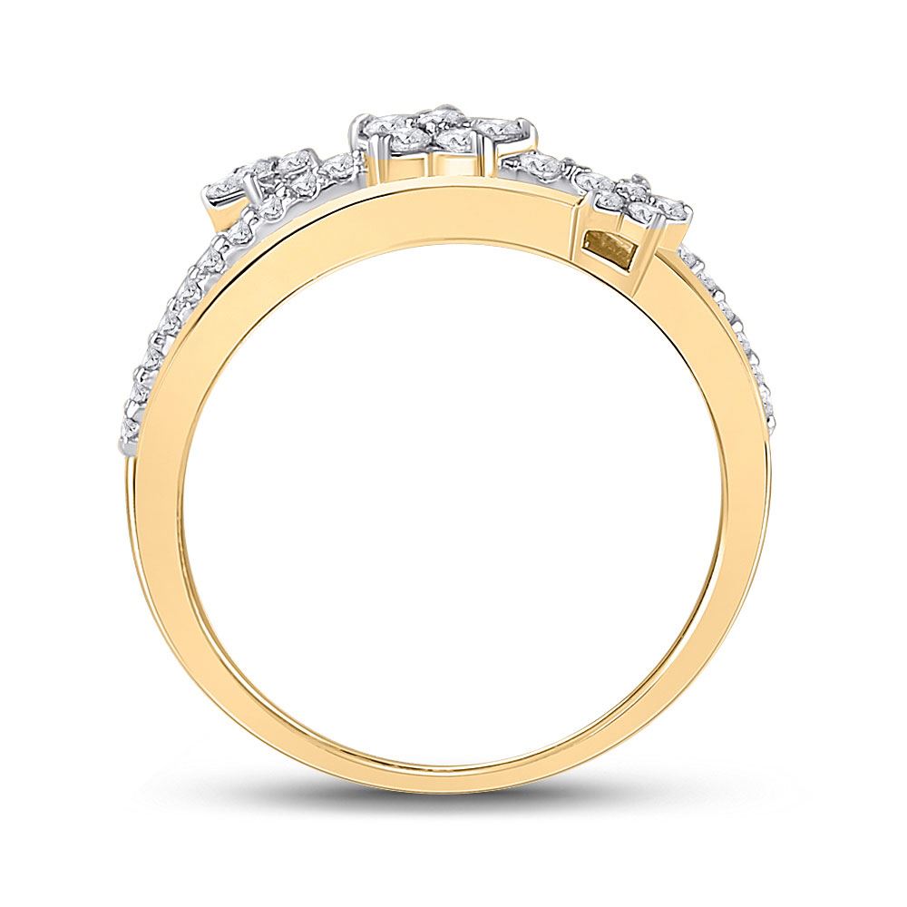 10kt Yellow Gold Womens Round Diamond Flower Star Band Ring 1/3 Cttw