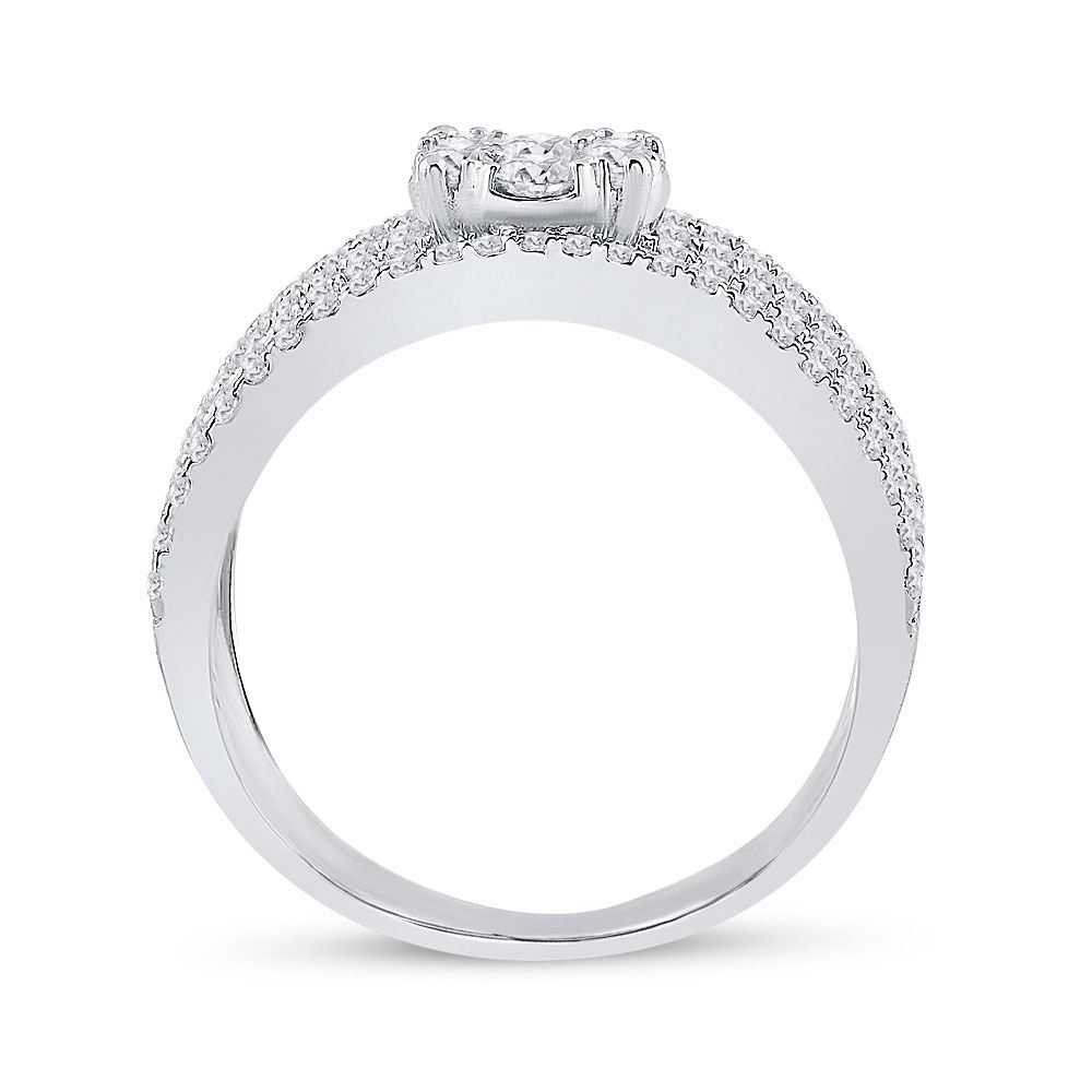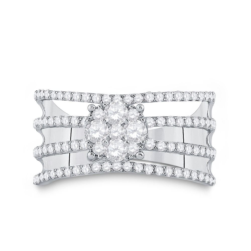 10kt White Gold Womens Round Diamond Four Row Flower Cluster Ring 1 Cttw