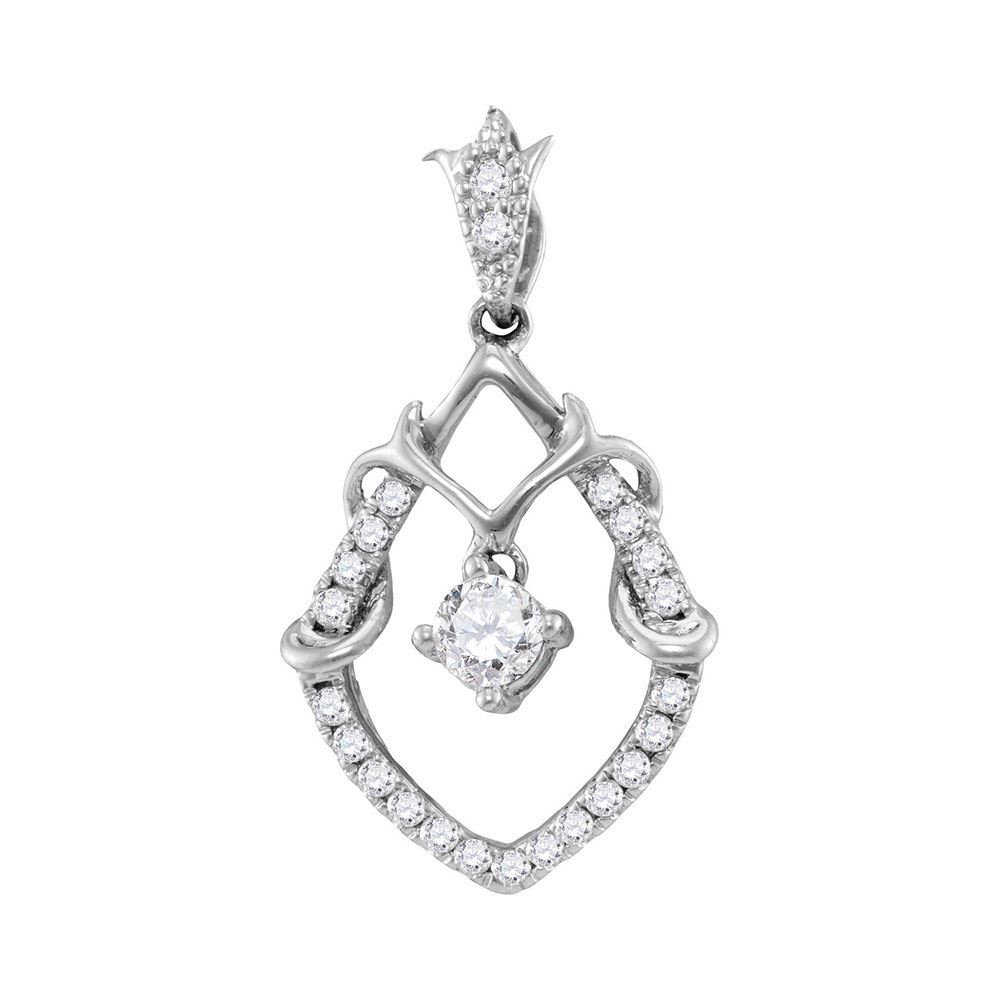 10kt White Gold Womens Round Diamond Framed Solitaire Pendant 1/4 Cttw