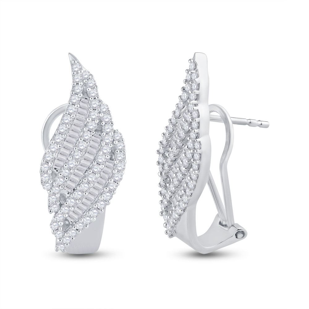 14kt White Gold Womens Round Diamond French-Clip Hoop Earrings 1-1/3 Cttw