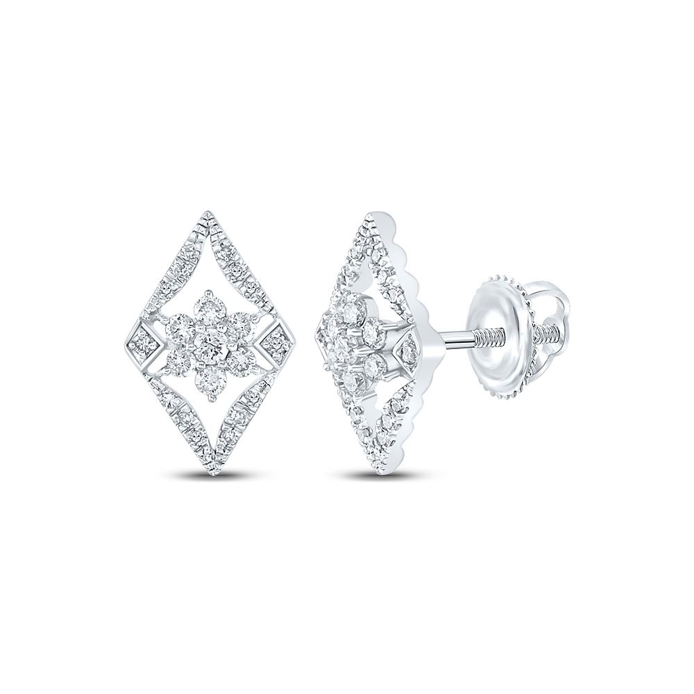 14kt White Gold Womens Round Diamond Geometric Cluster Earrings 3/8 Cttw