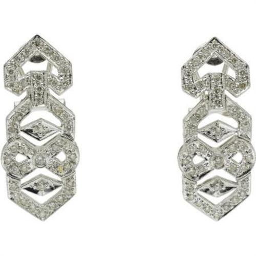 <B>Diamond, Gold Earrings</B></I><BR><BR>The earrings are enhanced by full-cut diamonds weighing a total of approximately 0.85 carat, set in 14k white gold, completed by omega clip backs and posts. Gross weight 9.20 grams.<BR>Note: earrings are designed for pierced ears but are easily converted<BR>Dimensions: 1-1/4 inches x 1/2 inch<BR><BR> <B>Condition Report:</B> Normal signs of wear as appropriate with age.<BR><BR><b>Shipping:</b> Miscellaneous Collectibles, Smal (<a target="_blank" href="http://www.heritageauctions.com/common/shipping.php">view shipping information</a>)