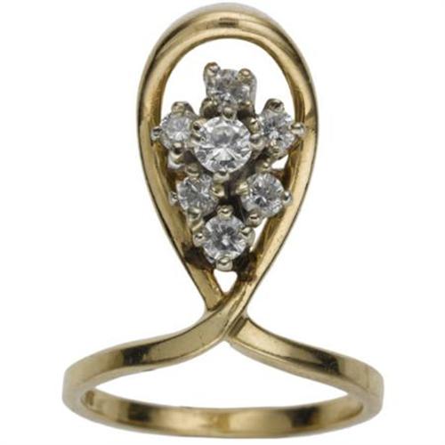 <B>Diamond, Gold Ring</B></I><BR><BR>The ring, designed as a loop, features a cluster of full-cut diamonds weighing a total of approximately 0.50 carat, set in 14k yellow gold with rhodium finished accents. Gross weight 4.50 grams. <BR>*Note: Size 5-1/2 (sizeable) <B>Condition Report:</B> Good condition.<BR><BR><b>Shipping:</b> Miscellaneous Collectibles, Smal (<a target="_blank" href="http://www.heritageauctions.com/common/shipping.php">view shipping information</a>)