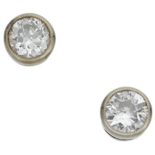 <B>Diamond, Gold Earrings</B></I><BR><BR>Each stud earring features a round brilliant-cut diamond weighing approximately 0.50 carat, bezel set in 14k white gold, completed by screw posts. Total diamond weight for the pair is approximately 1.00 carat. Gross weight 1.90 grams. <BR>*Note: earrings are designed for pierced ears <B>Condition Report:</B> Very good condition.<BR>Diamonds are SI clarity / I-J color.<BR><BR><b>Shipping:</b> Miscellaneous Collectibles, Smal (<a target="_blank" href="http://www.heritageauctions.com/common/shipping.php">view shipping information</a>)