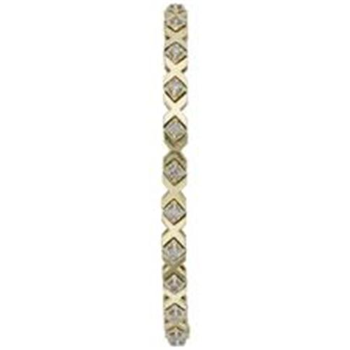 <B>Diamond, Gold Bracelet</B></I> The 14k yellow gold bracelet features full-cut diamonds weighing a total of approximately 0.65 carat, alternating with "x" shaped links, completed by a figure-eight safety clasp. Gross weight 15.30 grams. <BR><I>Dimensions: 7 inches x 3/16 inch</B></I><BR><BR><b>Shipping:</b> Miscellaneous Collectibles, Smal (<a target="_blank" href="http://www.heritageauctions.com/common/shipping.php">view shipping information</a>)