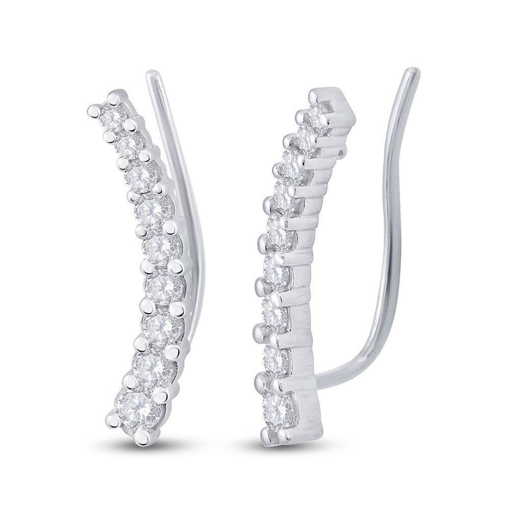 10kt White Gold Womens Round Diamond Graduated Climber Earrings 1 Cttw