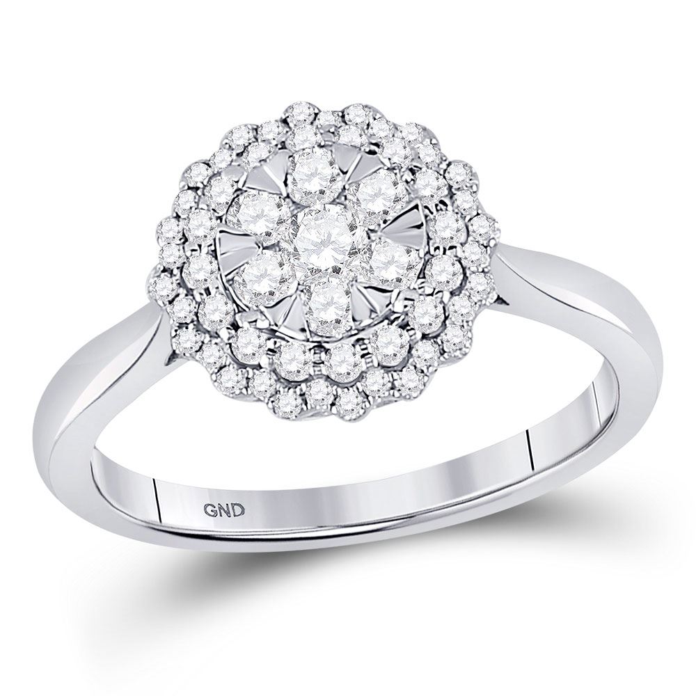 REF-47N3F - SKU: GD149226 ---- Diamond Halo Flower Cluster Ring 1/2 Cttw 10kt White Gold