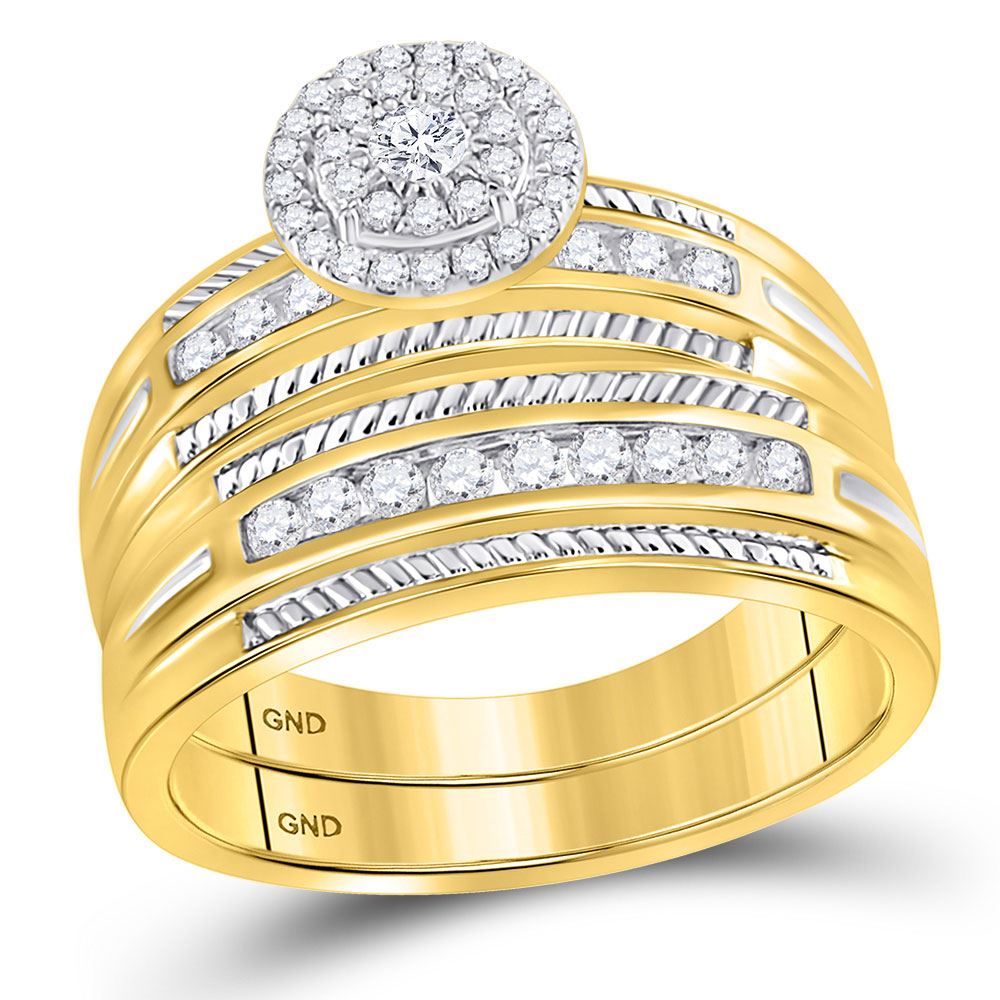 10kt Yellow Gold His Hers Round Diamond Halo Matching Wedding Set 5/8 Cttw.