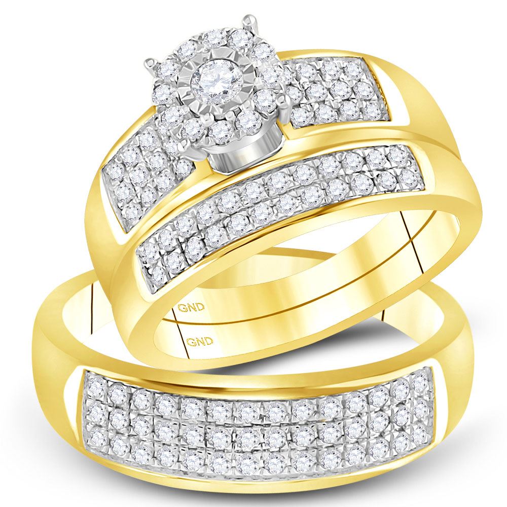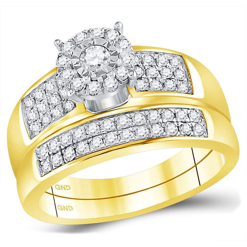 14kt Yellow Gold His Hers Round Diamond Halo Matching Wedding Set 7/8 Cttw.