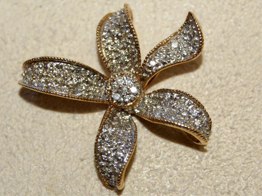 Total Retail $3,380 14KT Yellow Gold (#1) Retail Price $3,380 14KT Yellow Gold Diamond Hawaiian Flower Design Ladies Pendant