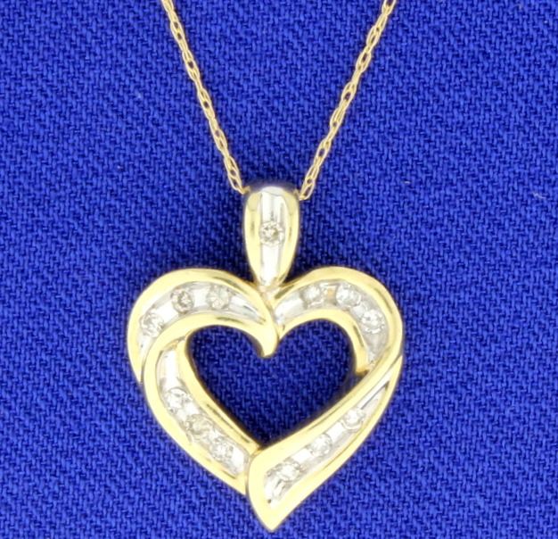The diamonds weigh approx. 1/4 carat. Clarity SI and color "H-I-J". Heart measures 3/4" long. The chain is new and measures 18" long. 2.4g