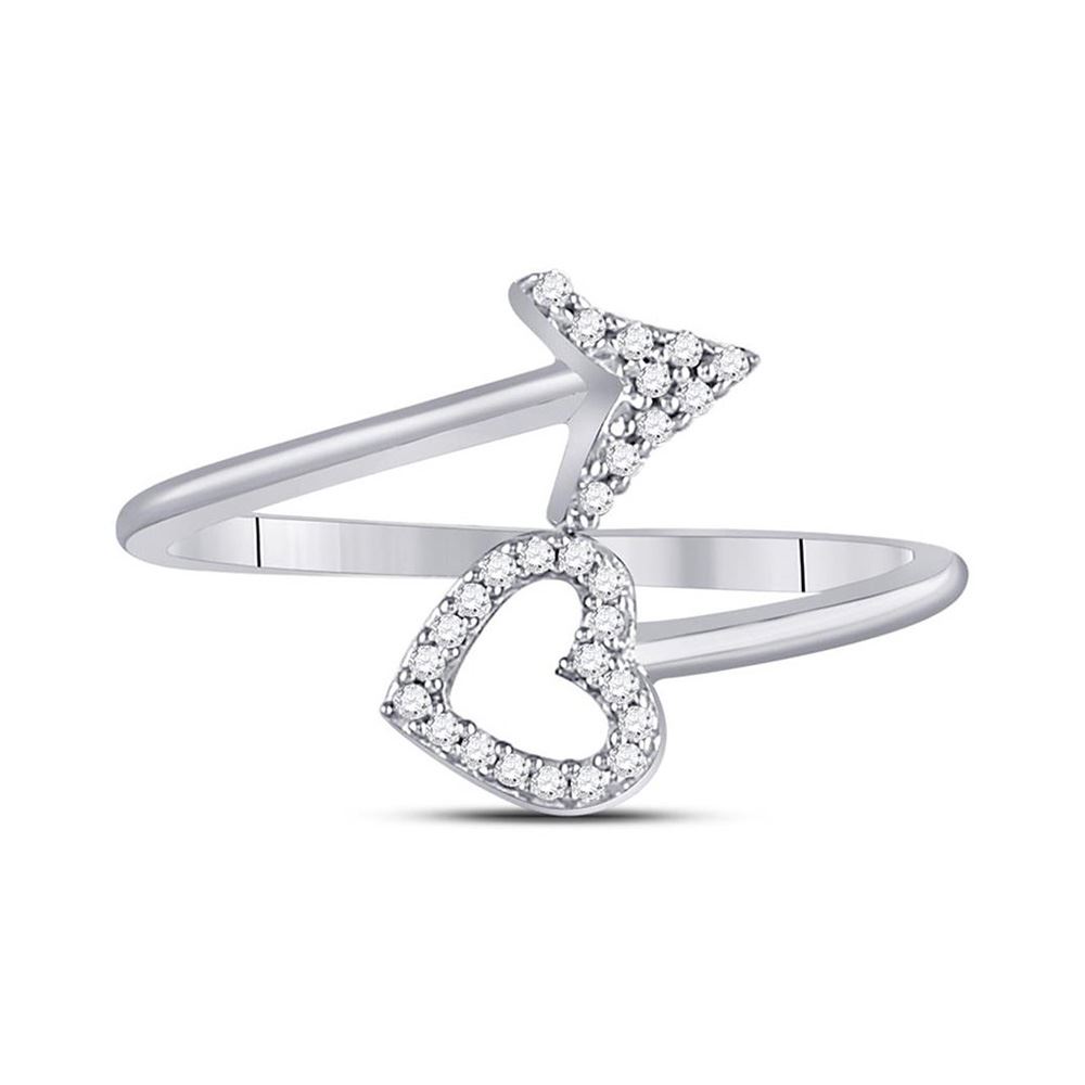10kt White Gold Womens Round Diamond Heart Arrow Band Ring 1/10 Cttw
