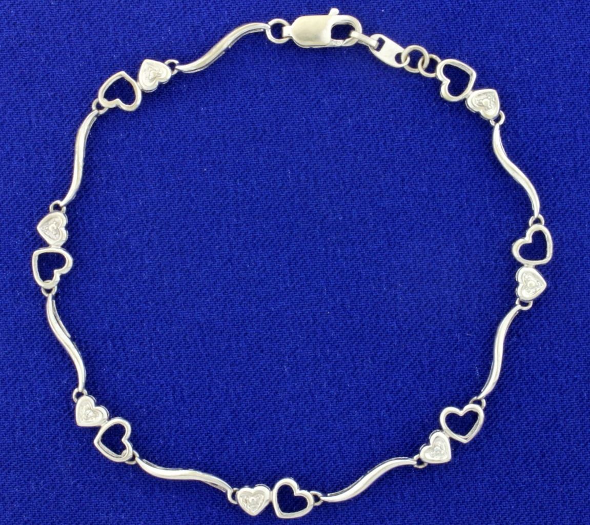 In 10K white gold it is 7 1/2 inches long and contains two .01ct diamonds with lobster clasp.     3.2g