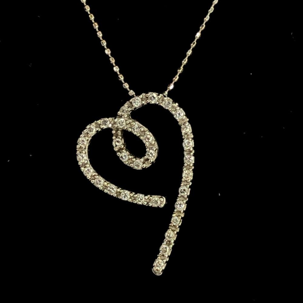 DESCRIPTION DETAIL: 14k White Gold Diamond Heart Chain Link Necklace & amp; Pendant Set
