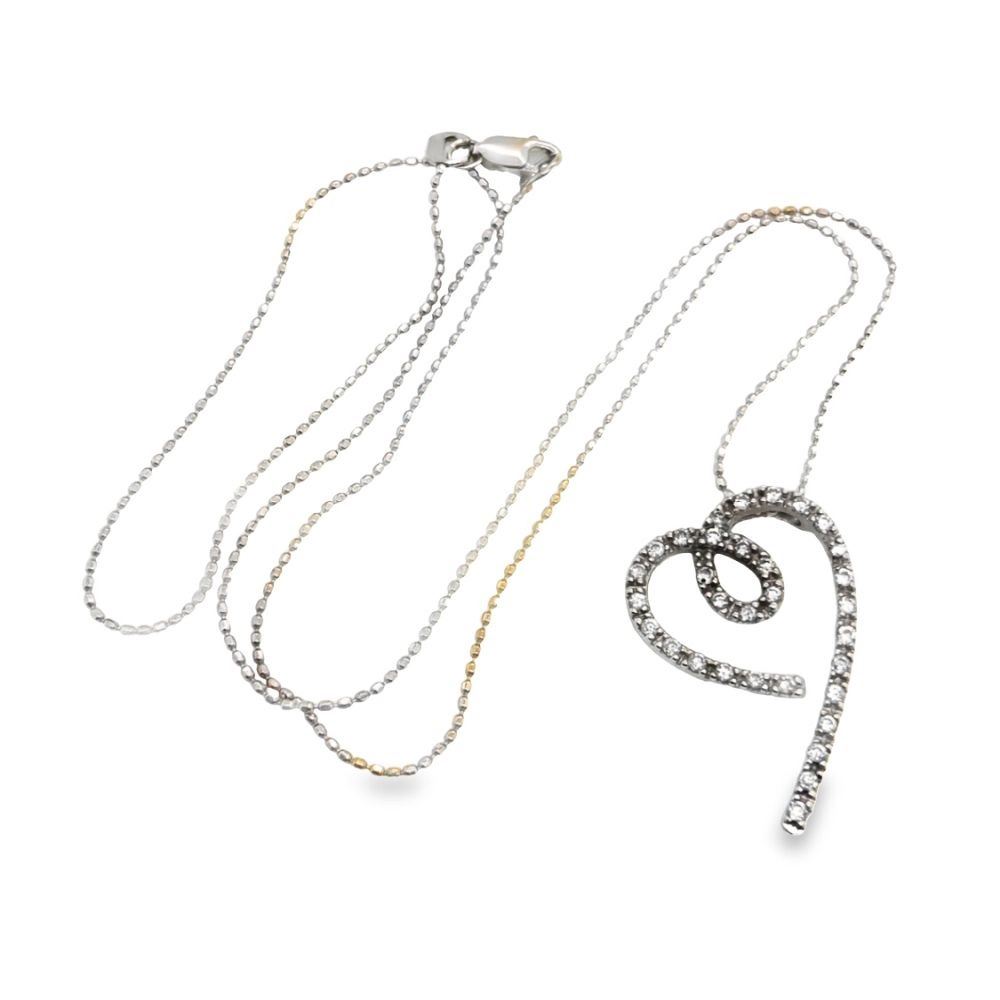 TITLE DESCRIPTION:& nbsp; 14k White Gold Diamond Heart Chain Link Necklace & amp; Pendant Set