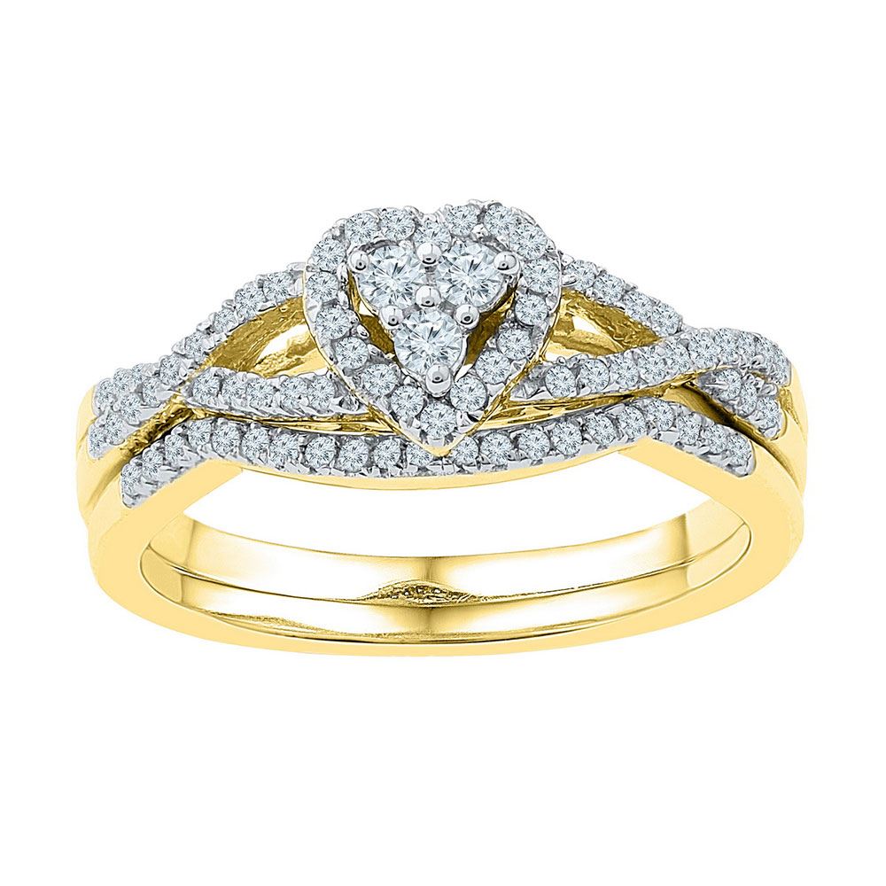 REF-37X3Y - SKU: GD97297 ---- Diamond Heart Cluster Bridal Wedding Engagement Ring Set 3/8 Cttw 10k Yellow Gold