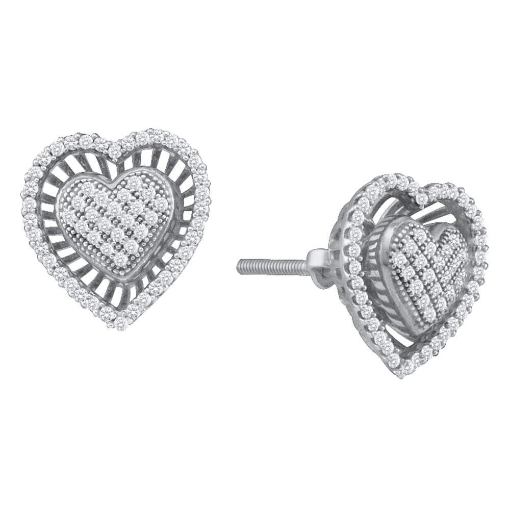 10kt White Gold Womens Round Diamond Heart Cluster Earrings 1/3 Cttw