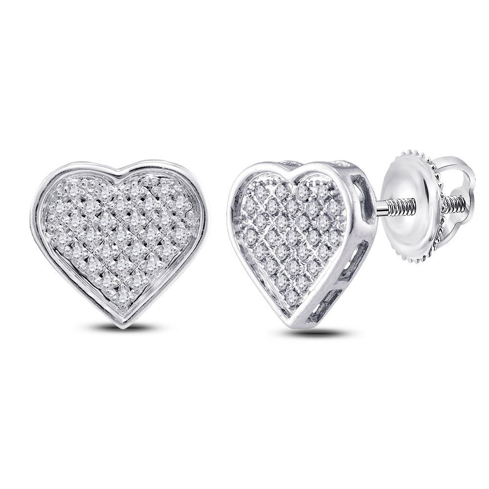 Sterling Silver Womens Round Diamond Heart Cluster Earrings 1/6 Cttw
