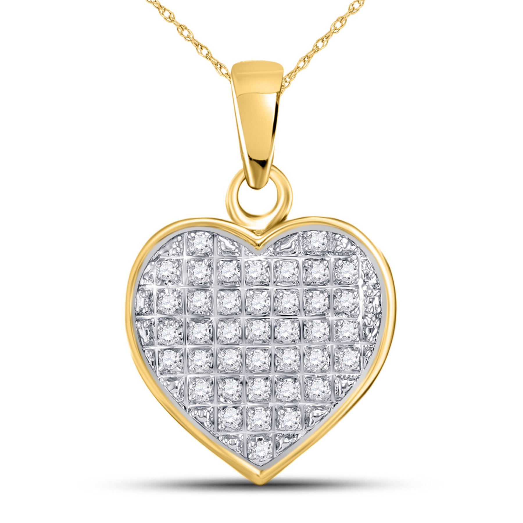 REF-9G1M - SKU: GD111917 ---- Diamond Heart Cluster Pendant 1/10 Cttw 10kt Yellow Gold