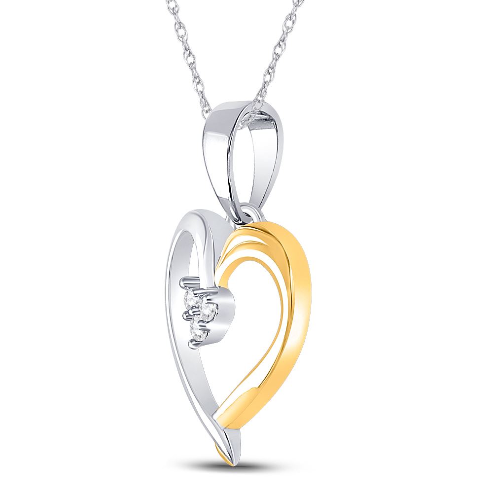Two-tone Sterling Silver Womens Round Diamond Heart Cluster Pendant 1/20 Cttw