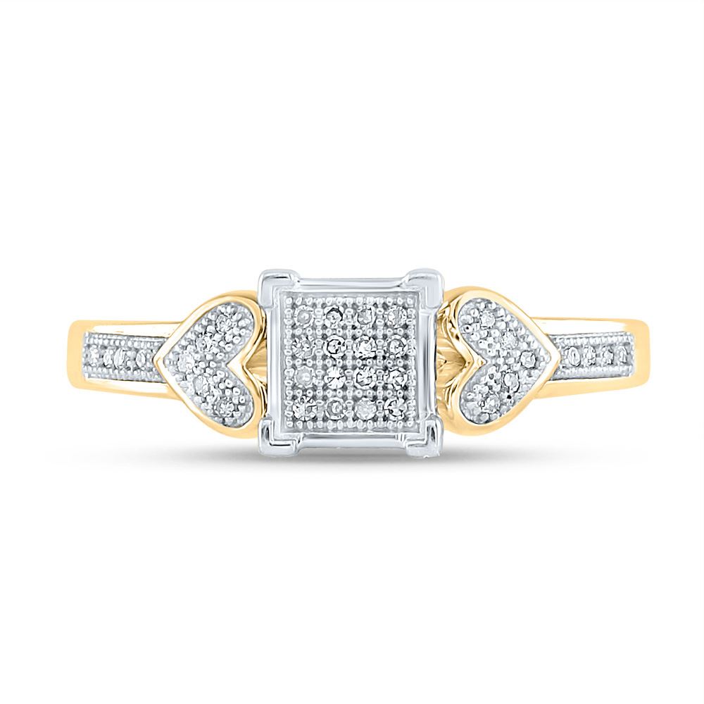 10kt Yellow Gold Womens Round Diamond Heart Cluster Ring 1/10 Cttw