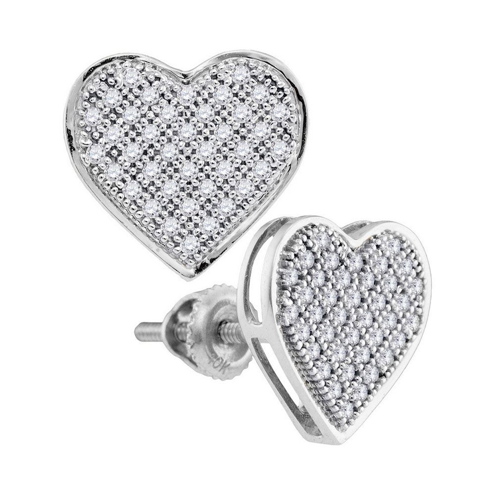 REF-20W0H - SKU: GD50471 ---- Diamond Heart Cluster Screwback Earrings 1/4 Cttw 10kt White Gold