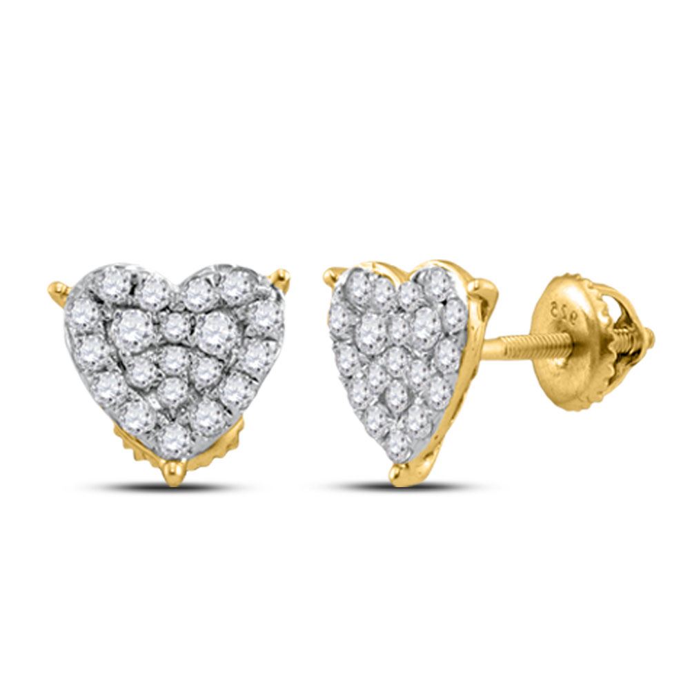 REF-30R9K - SKU: GD113324 ---- Diamond Heart Cluster Stud Earrings 1/2 Cttw 10kt Yellow Gold