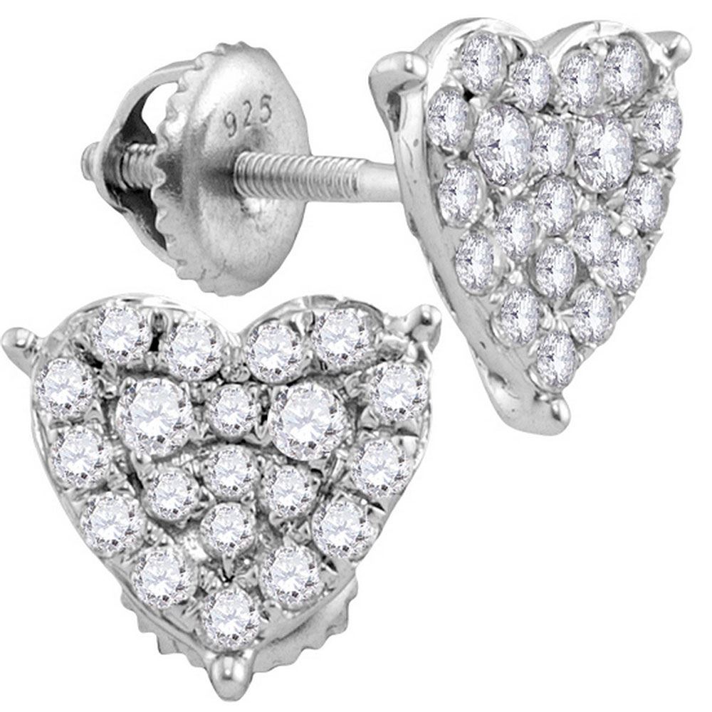 10kt White Gold Womens Round Diamond Heart Cluster Stud Earrings 3/4 Cttw