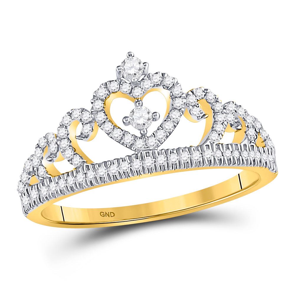 REF-33N6F - SKU: GD130100 ---- Diamond Heart Crown Fashion Ring 1/5 Cttw 10kt Yellow Gold