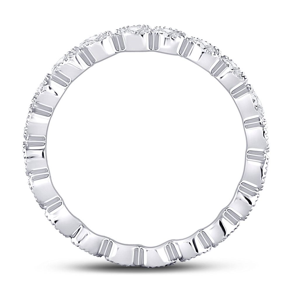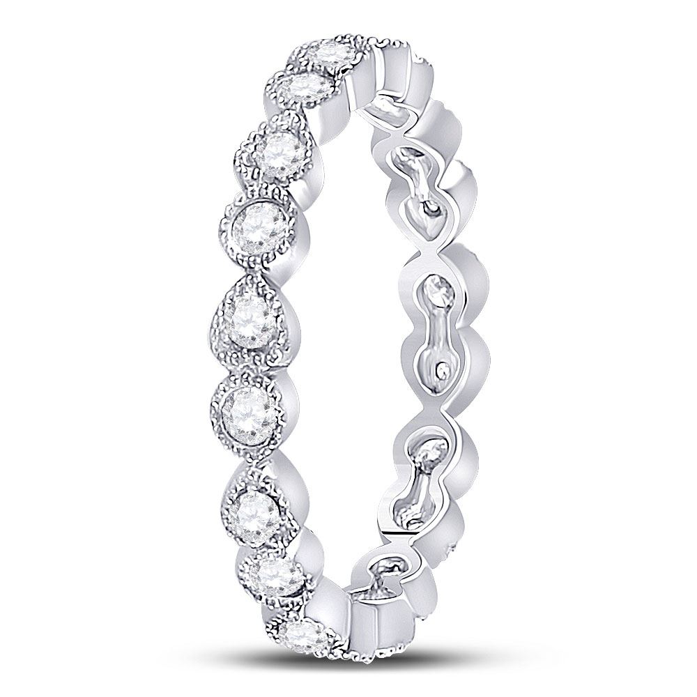 10kt White Gold Womens Round Diamond Heart Eternity Band Ring 3/8 Cttw