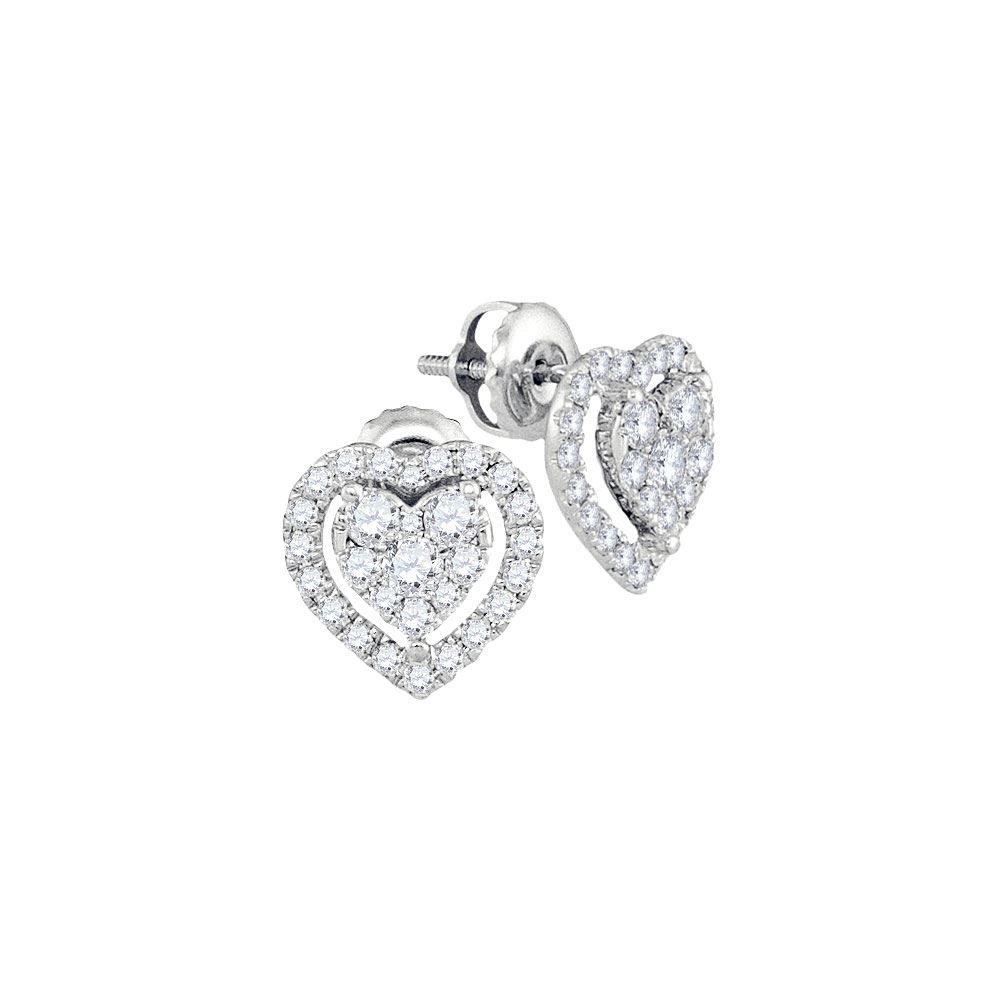 14kt White Gold Womens Round Diamond Heart Frame Cluster Stud Earrings 3/4 Cttw