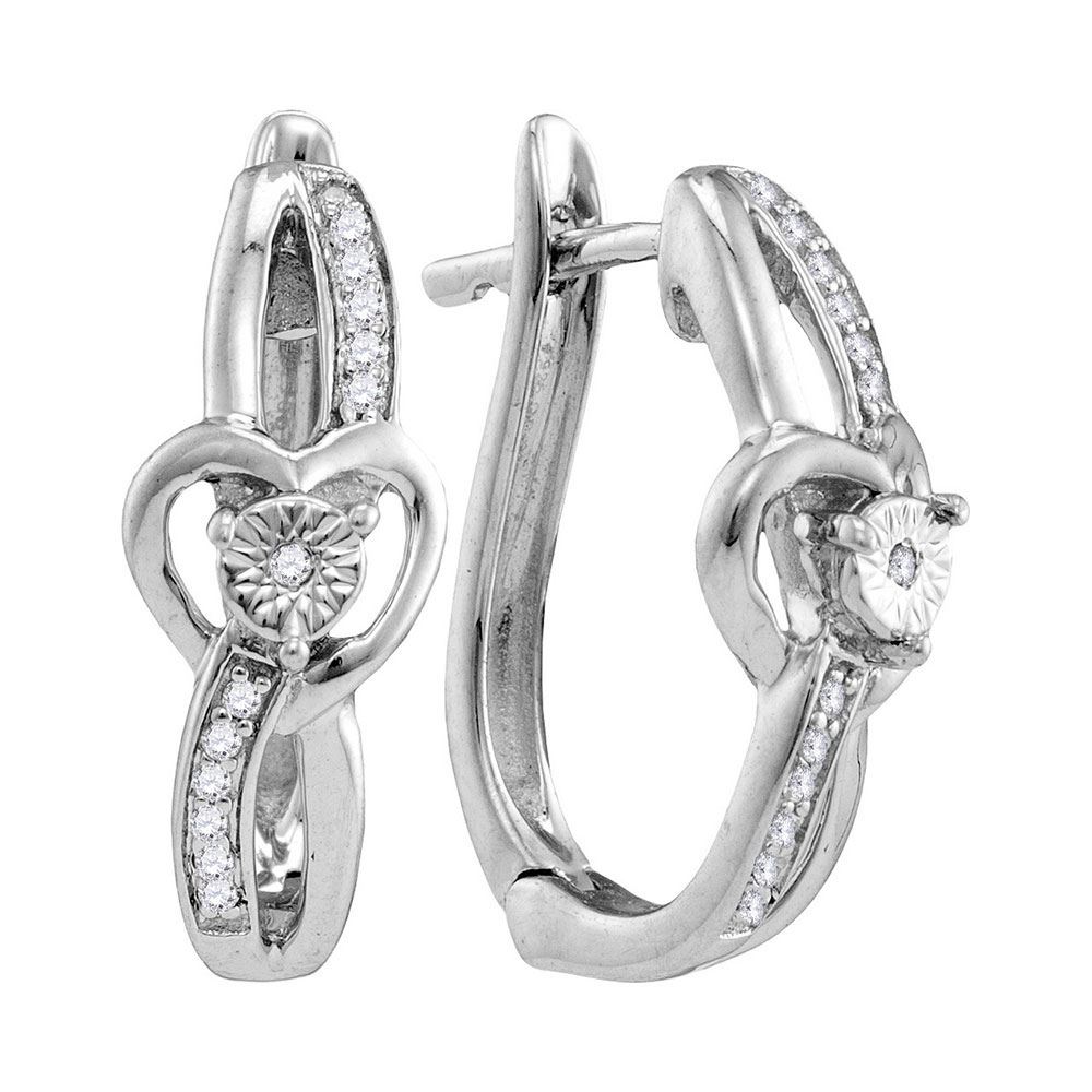 Sterling Silver Womens Round Diamond Heart Hoop Earrings 1/20 Cttw