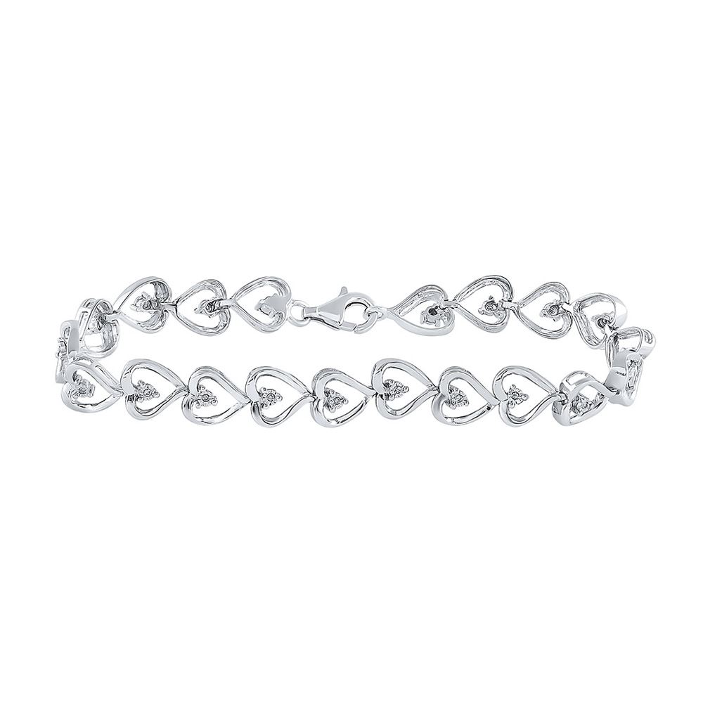 Sterling Silver Womens Round Diamond Heart Link Bracelet 1/10 Cttw