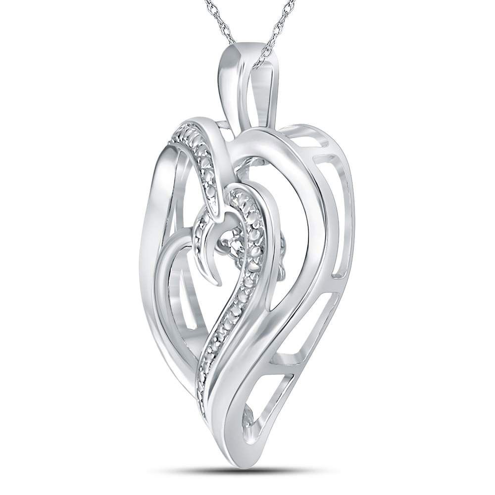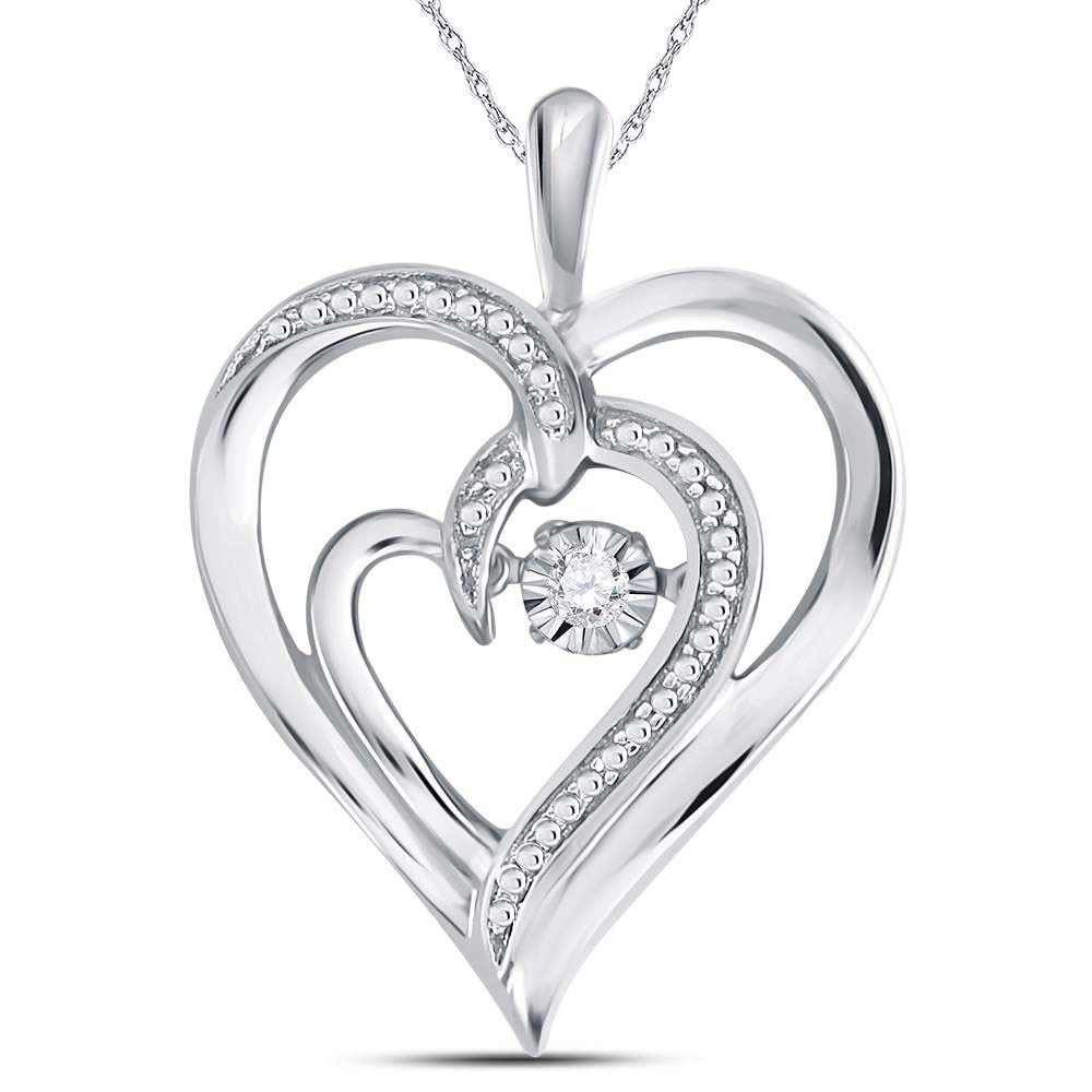 Sterling Silver Womens Round Diamond Heart Moving Twinkle Pendant .03 Cttw