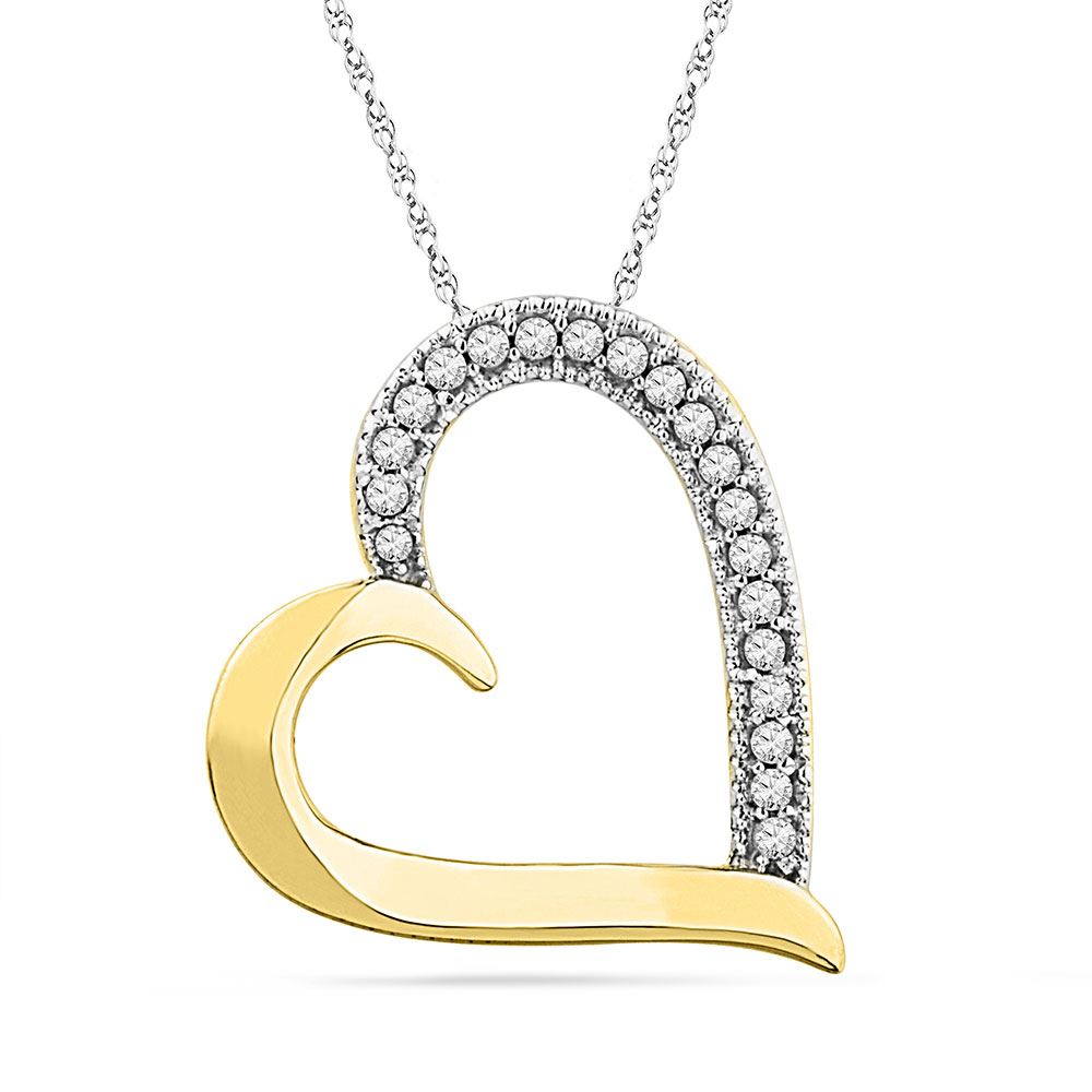REF-9F1N - SKU: GD100832 ---- Diamond Heart Outline Pendant 1/10 Cttw 10kt Yellow Gold