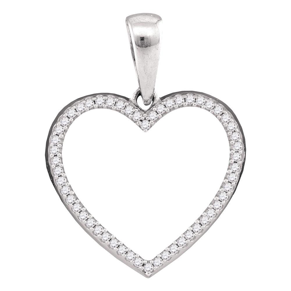 Sterling Silver Womens Round Diamond Heart Outline Pendant 1/6 Cttw