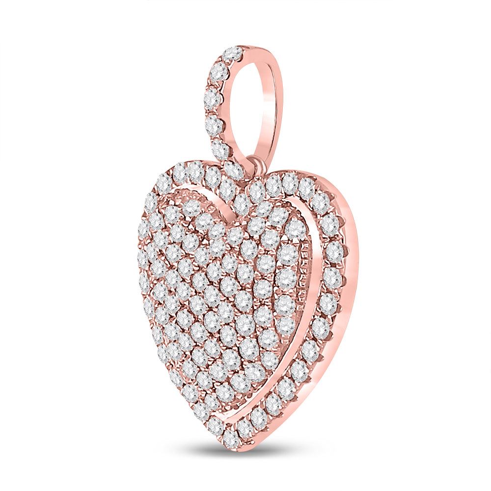 14kt Rose Gold Womens Round Diamond Heart Pendant 1-1/4 Cttw