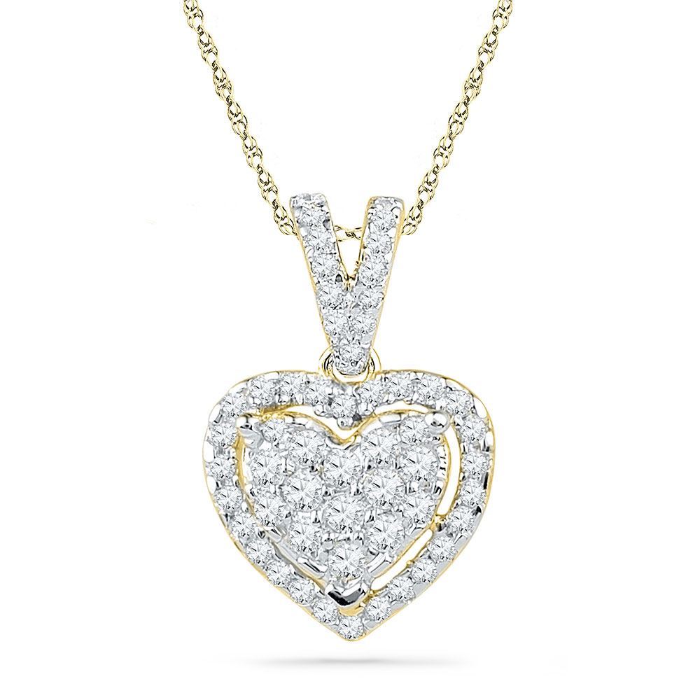 REF-11K8R - SKU: GD101017 ---- Diamond Heart Pendant 1/5 Cttw 10kt Yellow Gold