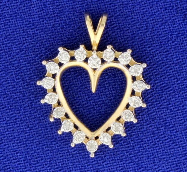 In 14K yellow gold, this pendant contains eighteen .01ct diamonds and is 1 inch long. 3.4g