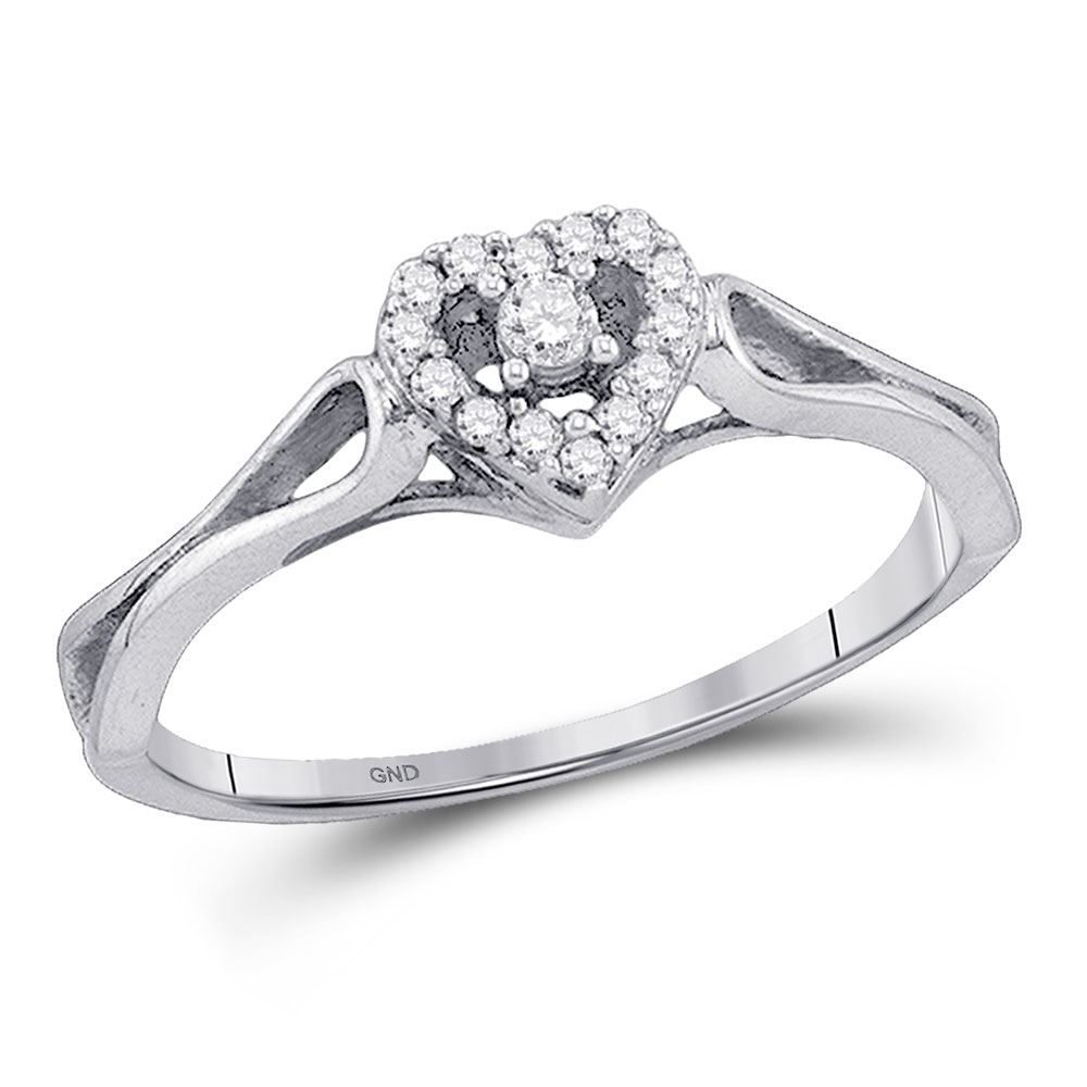 REF-15R5K - SKU: GD77575 ---- Diamond Heart Promise Bridal Ring 1/10 Cttw 10kt White Gold