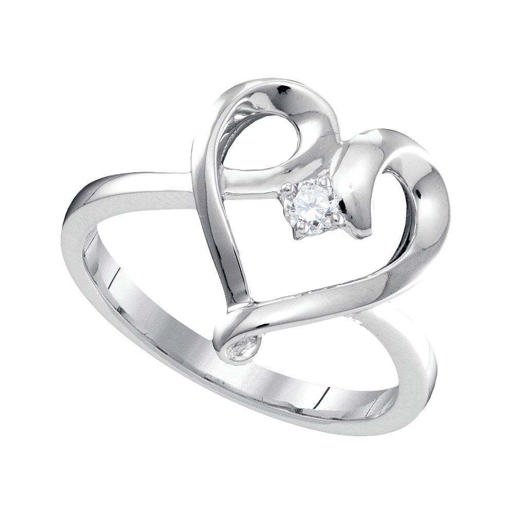 10kt White Gold Womens Round Diamond Heart Promise Ring 1/20 Cttw