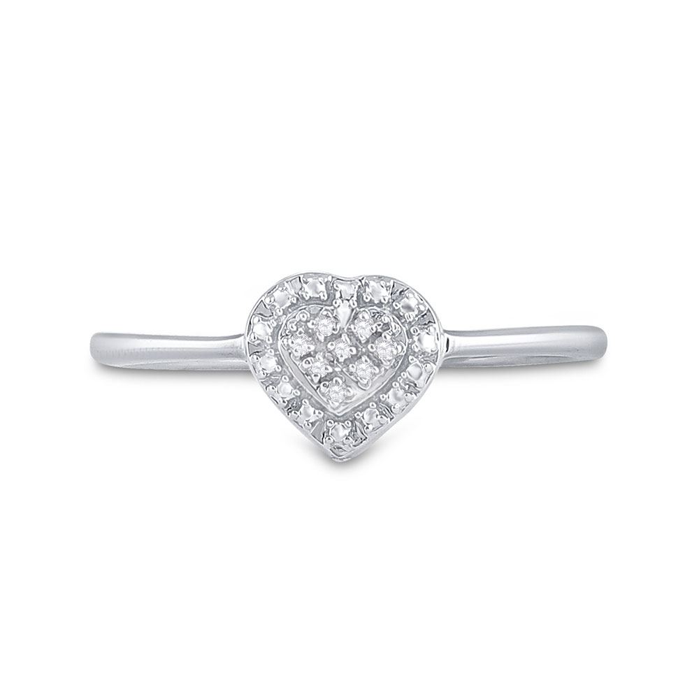 Sterling Silver Womens Round Diamond Heart Ring .03 Cttw