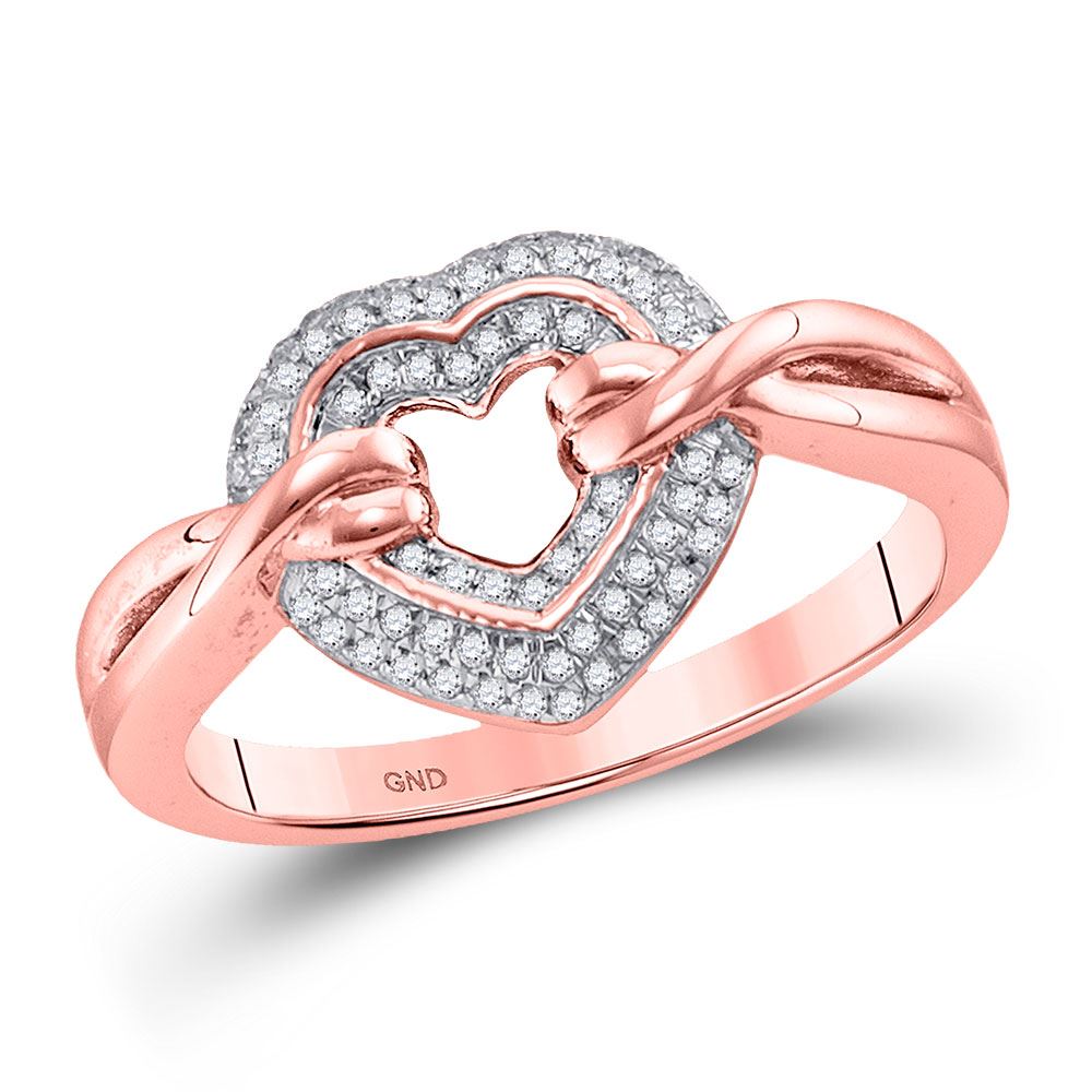 10kt Rose Gold Womens Round Diamond Heart Ring 1/5 Cttw