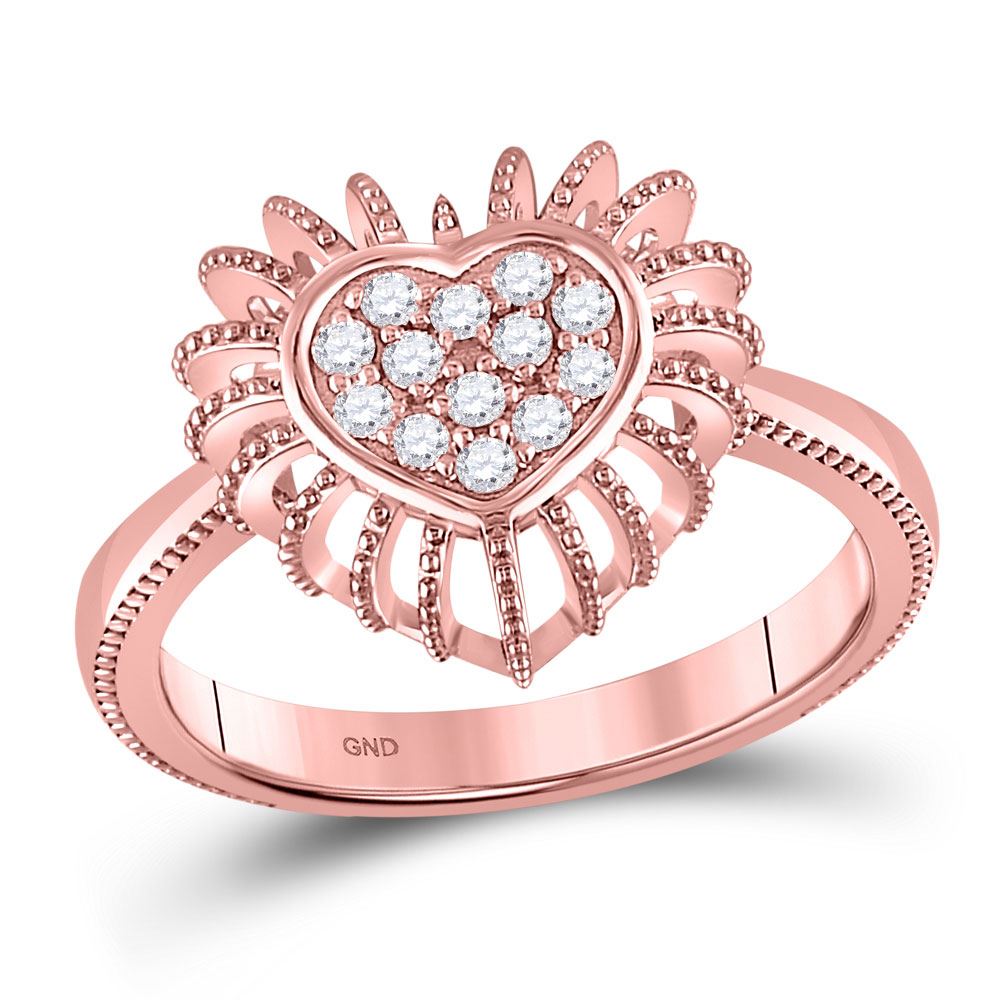 10kt Rose Gold Womens Round Diamond Heart Ring 1/8 Cttw