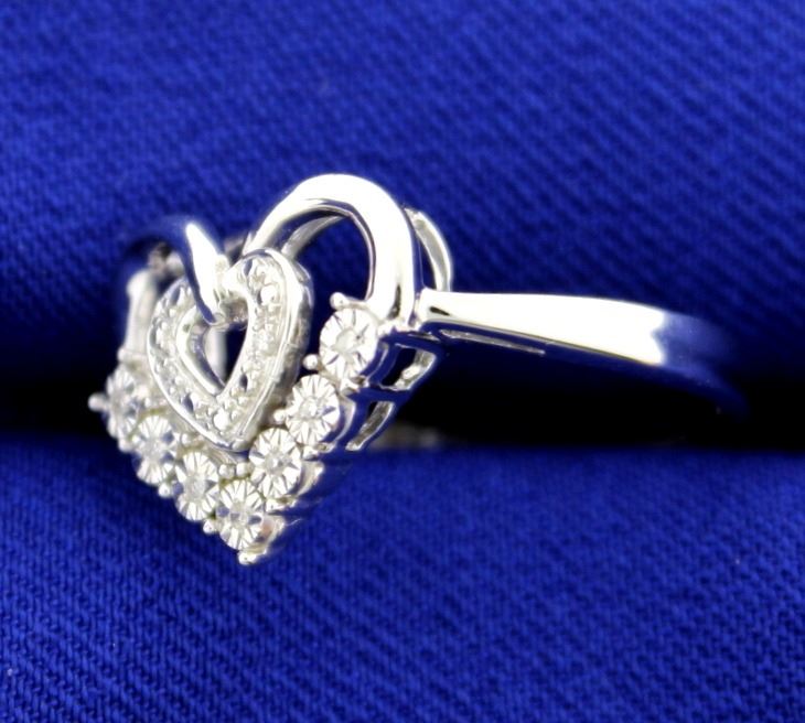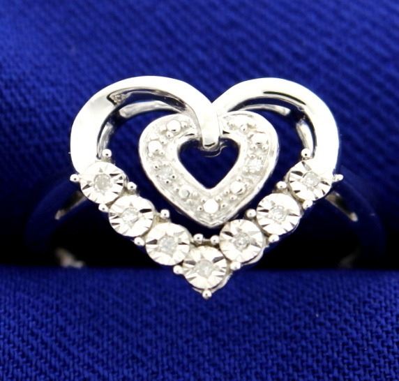 In sterling silver. Contains six 1/2 pt high quality round brilliant diamonds. Size 7. 2.4g