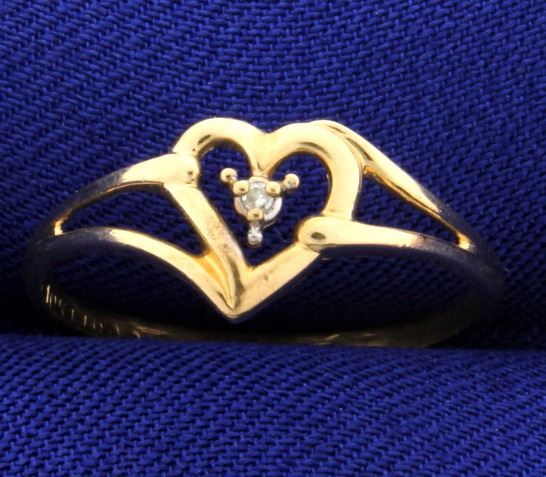 In 10K yellow gold this ring contains a .01ct diamond, and is a size 7 1/2. 1.1g